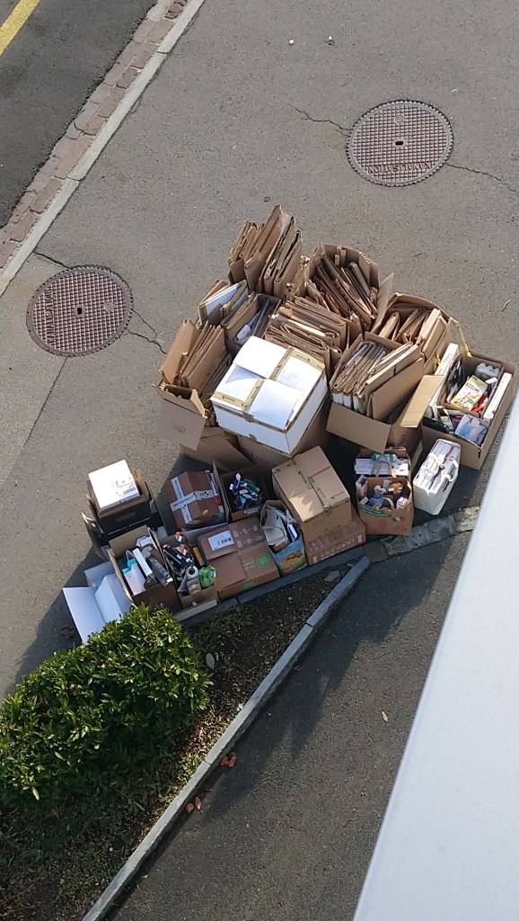 -we veel karton verzamelden en na exact 1 maand blij zijn om hiervan verlost te zijn (lang leve de maandelijkse kartonophaling)