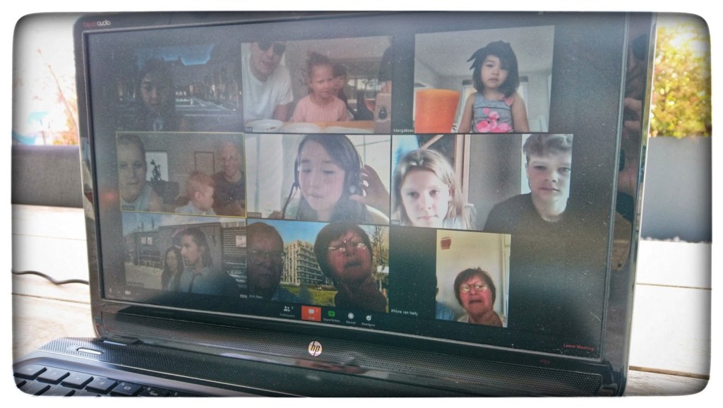 Nadat het ontbijt een beetje verteerd was, konden we ons al klaarmaken voor de familie-aperitief via Zoom. Oma, opa, tantes, nonkels, neefjes en nichtjes verzamelden stipt op tijd voor een gezellig paasaperitief. Blij om elkaar te horen en terug te zien. Live was uiteraard leuker geweest en ook Gust en Julia hadden zeker genoten van wat neefjes/nichtjes tijd maar we maakten er het beste van. En de wijn…die smaakte even lekker.