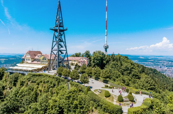 De Uetliberg ligt op een hoogte van 873 meter. Om het getal mooi rond te maken, bouwden ze er een klimtoren om tot een hoogte van 900 meter te klimmen. Opgelet: om tot boven te klimmen dien je CHF2 via een automaat te betalen.