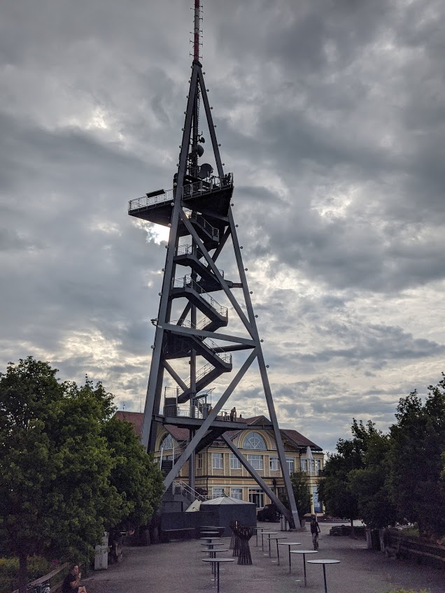 Na het ijsje zetten we de trip verder richting Uetliberg. We zagen de televisietoren en klimtoren al van ver staan. Nog een paar lichte klimmetjes voor we ons einddoel bereiken.