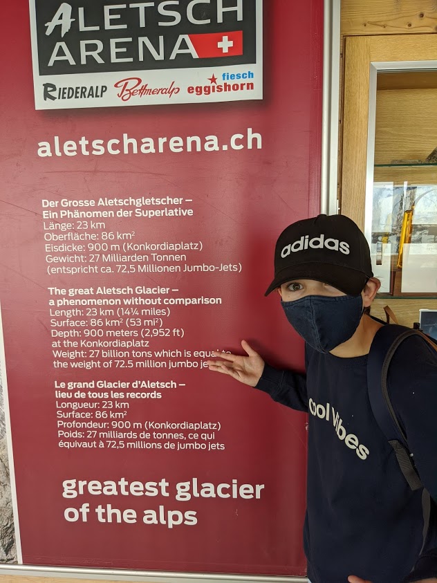 Pieter is als 14-jarige met de mutualiteit naar Fiesch geweest en had toen op dagtocht een gletsjer bezocht. Maar het weer zat heel erg tegen waardoor ze de gletsjer zo goed als niet gezien hadden. Hij droomde er altijd van om dit nog eens over te doen dus boekten we een tripje richting Fiesch, gelegen in het kanton Wallis (in het Frans zegt men Valais). We besloten niet in Fiesch zelf te logeren maar vonden een charmant hotel in Fiescheralp ‘Fiescheralp is een klein dorp op 2212 meter hoogte, dat ligt in de gemeente Fiesch van het kanton Wallis in Zwitserland. Fiescheralp was vroeger vooral bekend als Kühboden’.