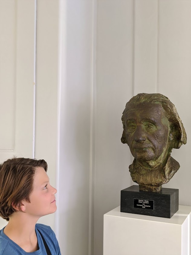 In Bern kan je ook enkele musea bezoeken maar dat lieten we aan ons voorbij gaan tijdens dit blitzbezoek. Al maakten we wel 1 uitzondering voor het ‘Albert Einsteinhaus’ in de hoofdstraat van het centrum. Op het 2de verdiep van dat huis, in de Kramgasse 49, woonde Albert Einstein in 1903 samen met zijn vrouw Mileva Maric. Daar zou hij zijn relativiteitstheorie geschreven hebben en daar werd ook zijn zoon Hans Albert Einstein geboren. Van het huis hebben ze een klein museum gemaakt waar je op de 2de verdieping de woonplaats kan bezoeken zoals ze er toen zou hebben uitgezien en op het 3de verdiep van de woning is een expositieruimte met wat meer uitleg over het leven van Einstein. Dit bezoek is wel eens de moeite waard. Voor €16 spendeerden we een halfuurtje in het Einstein huis wat ideaal is voor een museumbezoek met kinderen. In diezelfde straat maar dan aan de overkant, Kramgasse nummer 32, kan je ook nog het huis vinden waar hij voor zijn huwelijk een kamertje huurde en dus ook heeft gewoond.