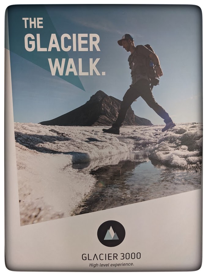 Je neemt eerst de kabellift van Col du Pillon (1546 m) naar Cabane (2525 m) en vanuit Cabane neem je een andere lift naar Scex Rouge (2971 m). Om de 3000 meter te bereiken (vandaar de naam Glacier 3000) ga je via een hangbrug naar het uitkijkpunt van waar je de Mont Blanc, de Jungfrau, Mönch, Eiger en de Matterhorn hun witte topjes kan zien (bij mooi en open weer uiteraard). Wij hadden geluk en konden ze allemaal spotten.