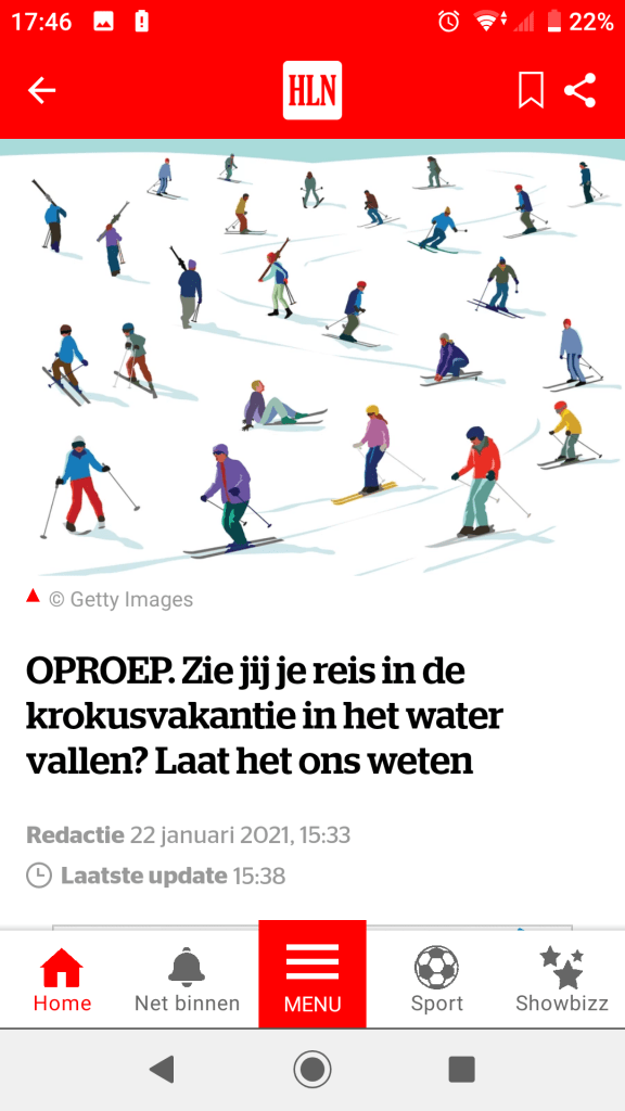 Ik las net je oproep op de website van HLN ivm de skireizen die in het water dreigen te vallen.