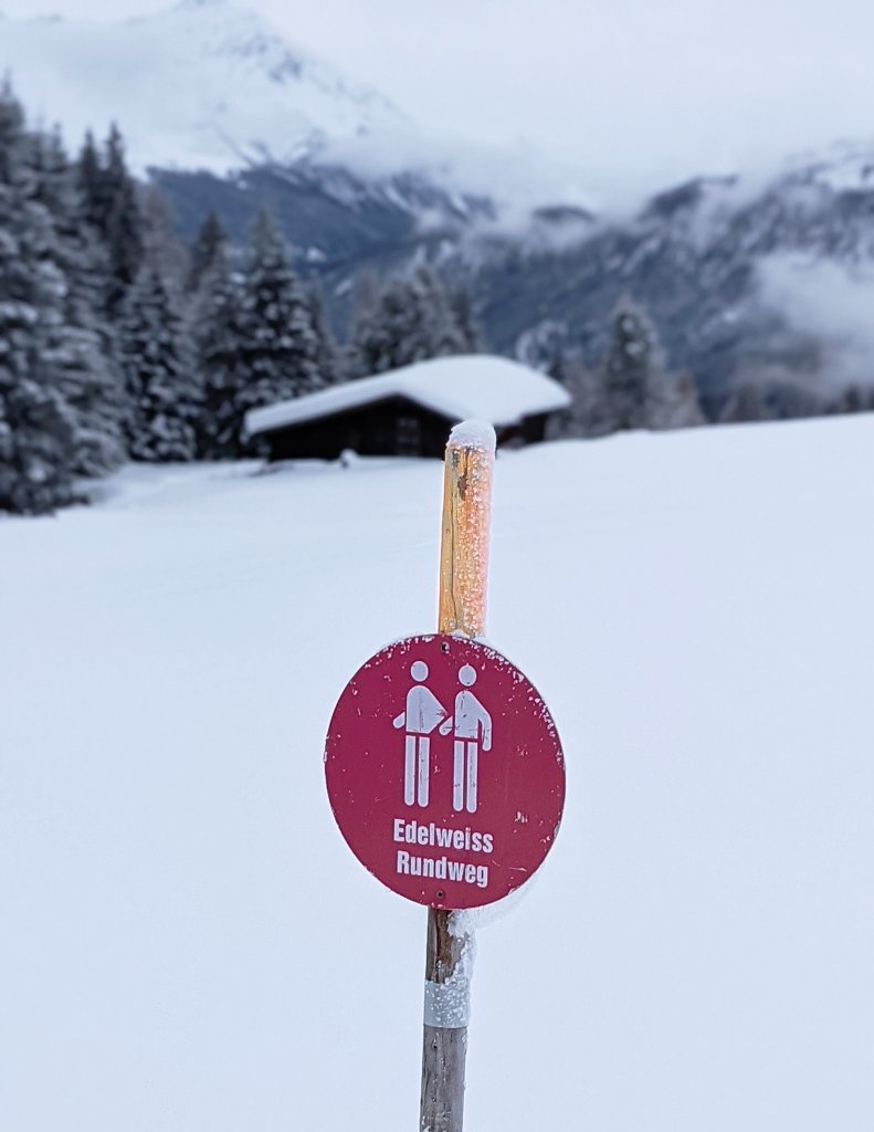 En wat een geluk dat we ons nog aan deze wandeling waagden na het bezoekje aan het stadscentrum. Tijdens het stijgen, zagen we het zonnetje van tussen het wolkendek verschijnen, het verse en imposante sneeuwtapijt leek net uit de lucht te zijn gevallen, het uitzicht op Arosa en Lenzerheide was adembenemend en er heerste zo’n aangename rust. Geen akelige stilte zoals in het dorp beneden maar een vredevolle rust. Zalig!!!
