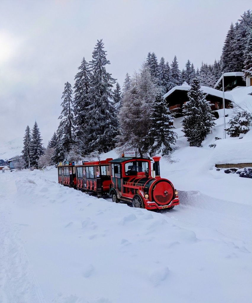Er is een parking in Chur centrum in de Kasernenstrasse 15. Van daaruit neem je een kabellift tot halverwege in Känzeli. Daar stap je over op gondelliftjes tot in Brambrüesch. We betaalden €14 per volwassene en de kinderen konden gratis mee met hun Juniorcard. In Brambrüesch kan je je door een toeristisch treintje tot aan de start van de skipiste (en de start van de rondwandeling) laten brengen. Dat is vooral handig voor skiërs en mensen met kleine kinderen maar wij wandelden ook dat stukje erbij. Gezien de coronaperiode voelde het stappen gewoon ook veel veiliger.