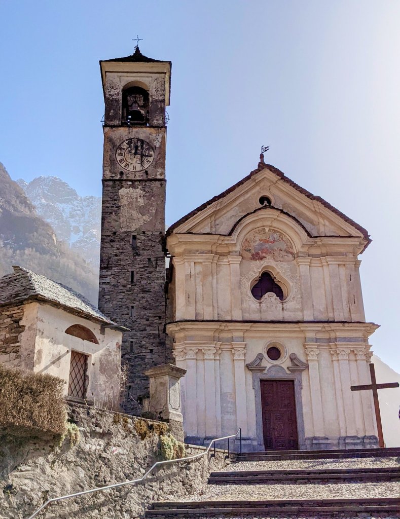 Na de picknick gingen we terug verder op ontdekkingstocht langs de Valle Verzasca.  We stopten hier en daar nog om te genieten van mooie plaatsjes en uitzichtspunten om uiteindelijk de wagen te parkeren aan het charmante kerkje in Frasco.  Van daaruit startte onze wandeling die ik vooraf had uitgestippeld.  De wandeling ging over de Frasco Ponte (hangbrug) langs de rivier richting het feërieke einddorpje Sonogno.  Sonogno deed ons een beetje denken aan Durbuy in de Ardennen (maar dan tussen hoge bergtoppen).