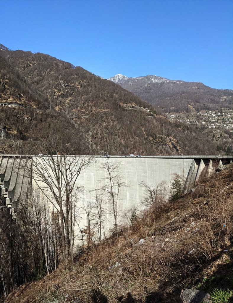 We reden met de auto door de vallei en stopten aan de mooiste en meest idyllische plaatsjes onderweg.  Onze eerste stop was de stuwdam Contra Dam (De Contra Dam, algemeen bekend als de Verzasca Dam en de Locarno Dam, is een boogdam aan de Verzasca-rivier in de Val Verzasca van Ticino, Zwitserland. De dam vormt het Lago di Vogorno 2 km stroomopwaarts van het Lago Maggiore en ondersteunt de 105 MW waterkrachtcentrale Verzasca. Wikipedia).  De dam is ook bekend uit de 007 film ‘GoldenEye’