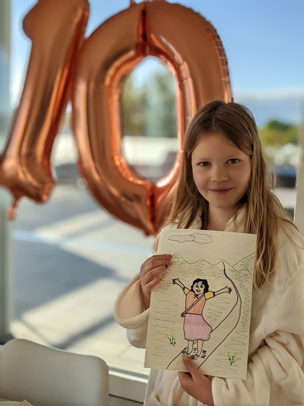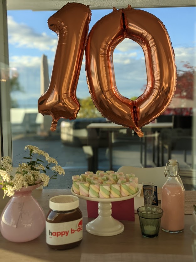 Het doet me terugdenken aan mijn lagere schoolperiode toen we elke vrijdag, in de maand mei, op de speelplaats, voor het Mariabeeld (dat trouwens boven de toiletten hing) moesten zingen met de hele school: Ave, ave, ave Maria, ave, ave, ave Maria… Als een trauma heb ik het niet ervaren maar ik kan het ook geen warme herinnering noemen eigenlijk. Maar meimaand dus, dat is de maand waarin er hier bij ons door de vrouwelijke huisgenoten gevierd mag worden. Na mijn verjaardag begin mei is het half mei aan Julia. En dit jaar niet zomaar een verjaardag. 10 jaar werd deze lieve, zorgzame en fijngevoelige meid.