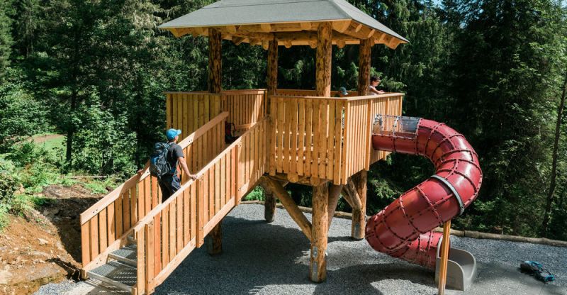 In het Zauberwald wandel je door het bos. En op het einde van dat Zauberwald kunnen de kinderen nog een keertje spelen bij de Zwergenturm.