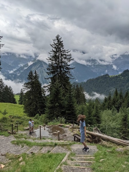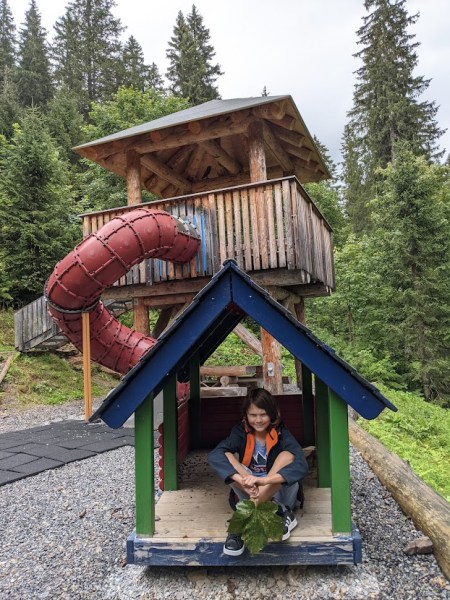 Wij besloten de Zwerg-Bartli Erlebnisweg te volgen vandaag. Opgelet! Je denkt hierbij meteen aan een ‘kinderwandeling’ maar de volledige wandeling bedraagt 3,5 uur en er wordt toch wel lichtjes gestegen. Wij deden maar een stukje van de wandeling: Braunwald – Tiidis Hüsli (een kabouterhuisje) – Wasserspielplatz – Zauberwald – Zwergenturm – Braunwald.