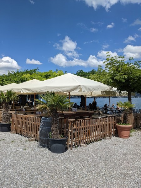 Na de middag (onze kindertjes komen hier elke middag thuis eten) nam ik de trein vanuit Thalwil richting Wädenswil. 10 minuutjes rijden langs de Zürichsee dus snel zal je je niet vervelen. In Wädenswil liep ik via de ondergrondse doorgang richting het meer om al eventjes te genieten en merkte ik een leuke Seebar op, Engel Seeplatz, waar ik een volgende keer (wanneer ik de wandeling misschien eens in omgekeerde richting doe) zeker zal stoppen voor een koffietje of iets fris.