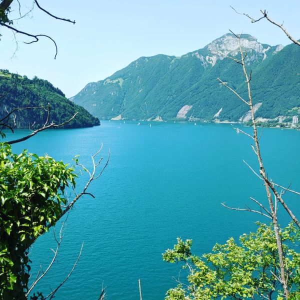 • Tellskapelle Sisikon: Hier maakten we een eerstje stop kort na de middag voor een koffie en een ijsje in de Seebeizli am Urnersee in Tellsplatte. Je moet hiervoor een kleine afdaling doen naar het meer maar het uitzicht is adembenemend. De ijsjes zijn er de moeite waard dus iedereen happy.