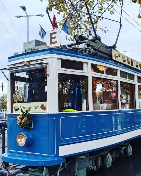 Die Schoggi (Zwitsers voor chocolade) tram rijdt jaarlijks in de maand november door de stad. Het is een ritje van zo’n 30 minuten met een antiek trammetje waar je verwend wordt met heisse Schoggi (warme chocolademelk), een taartje en pralines. De organisator is chocolatier Honold.