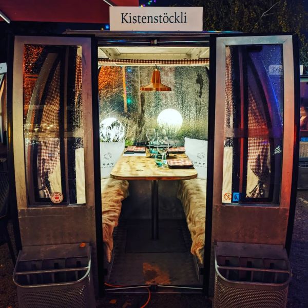 Kaasfondue eten op de meest originele plaatsen: op een speciaal voorziene tram, in een oude stilstaande kabellift, in een hottub, tijdens een ritje met een kabelliftje, in een cosy berghut…