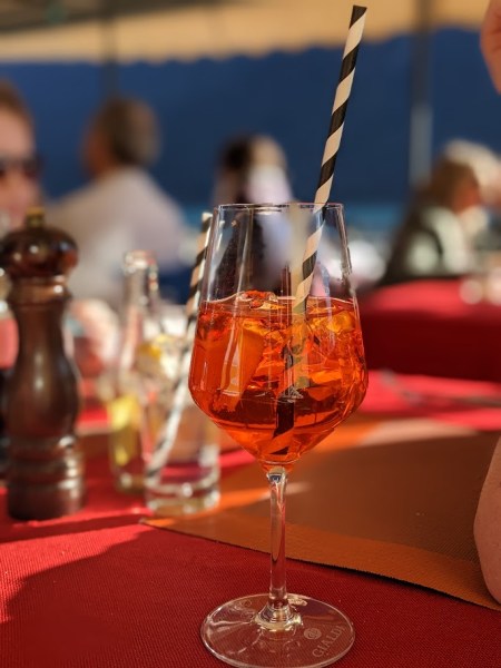 In Gandria waren we even stil. Het is er zo mooi en de tijd lijkt er te zijn stilgestaan. Je vindt er een 5-tal restaurantjes (met terras aan het meer) maar die waren nu, omdat het natuurlijk nog winterseizoen is, niet allemaal geopend. Diegene die wel open waren, hebben even een goudmijntje verdiend en konden ’s avonds waarschijnlijk geen stap meer zetten. Alle bezoekers van Gandria wilden natuurlijk genieten op een terrasje met zicht aan het meer. Wij maakten een stopje bij restaurant Antico (letterlijk en figuurlijk een beetje charmant Antico) waar we toch een 20-tal minuutjes moesten wachten op een plaatsje al was het die 20 minuten zeker meer dan waard. Een kleine, Italiaanse kaart met heerlijke gerechtjes deed ons al snel watertanden. En om het helemaal af te maken, bestelden we ook een Aperol als aperitief. Mmmmmmm