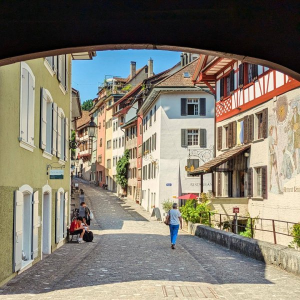 Wanneer je met de trein gaat, kom je meteen in het mooie stadsgedeelte en kan je beginnen ontdekken, slenteren en genieten. Met de wagen parkeren wij ons meestal net buiten de stad in de Ländliweg van waar we langs park Villa Boveri de stad binnenwandelen. In het stadscentrum zijn ook openbare parkeerplaatsen zoals bv. Parkhaus Theaterplatz waar je meteen in het hart van het centrum terechtkomt.
