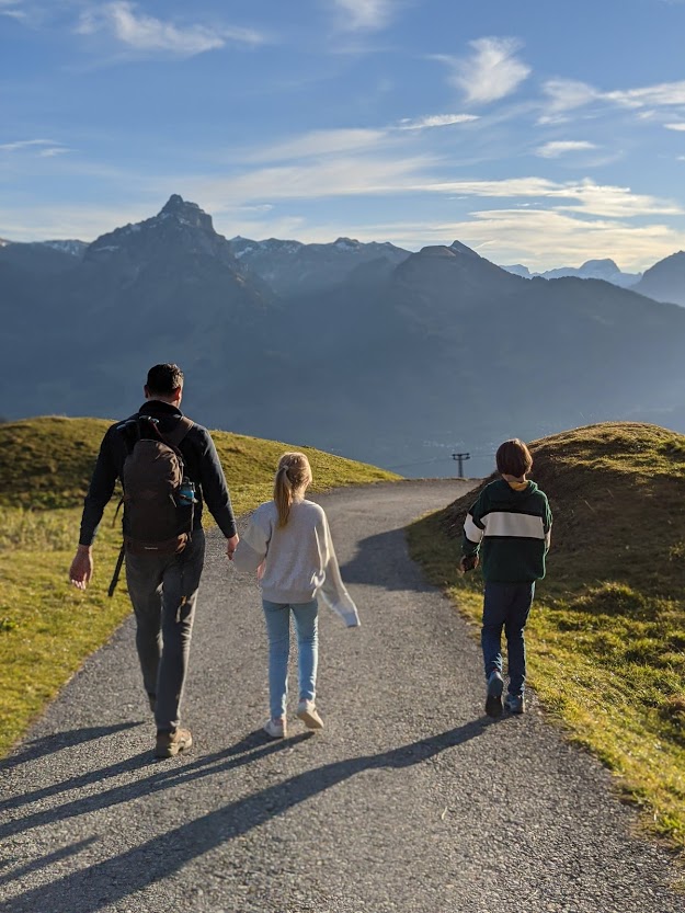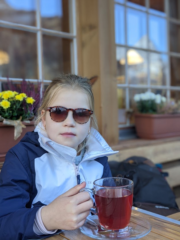 De wandeling is zo’n 5 kilometer lang en zou zo’n anderhalf uur stappen zijn maar uiteraard maakten wij daar weer een daguitstap van. Onderweg stoppen bij mooie views, nootjes als energiebron verorberen op een bankje in de zon, van de sneeuwberg glijden en gieren van het lachen, in een berghut stoppen en genieten van iets lekkers,… Geen haast voor ons maar heerlijk genieten!!!