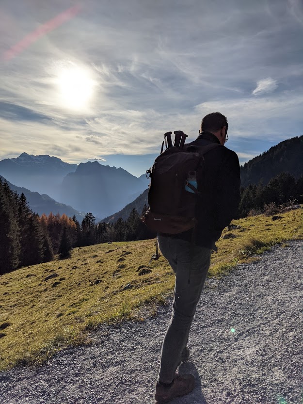 In het laatste stuk van de wandeling kwamen we een prachtig terras (Berggasthaus Herrenboden) in de zon tegen waar we halt hielden en onze hongerige buikjes vulden. Het blijft ongelooflijk om eind november in trui buiten te kunnen eten met zoveel zon op je snoet. Mijn huisgenoten trekken steeds hun ogen op wanneer moeder luidkeels roept: “Gastjes, voel je het? Vitamine D!!!”