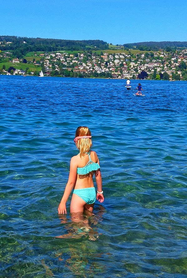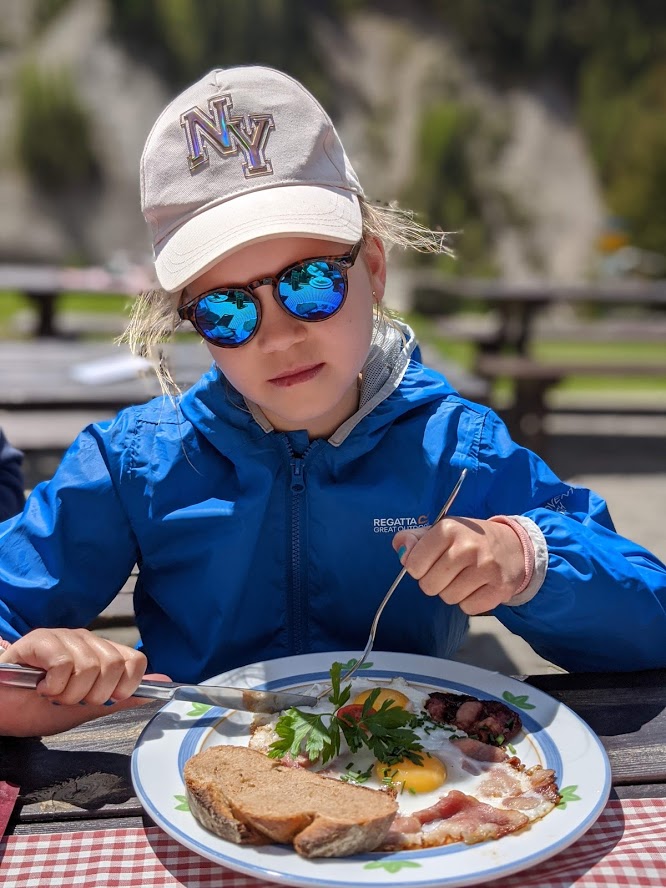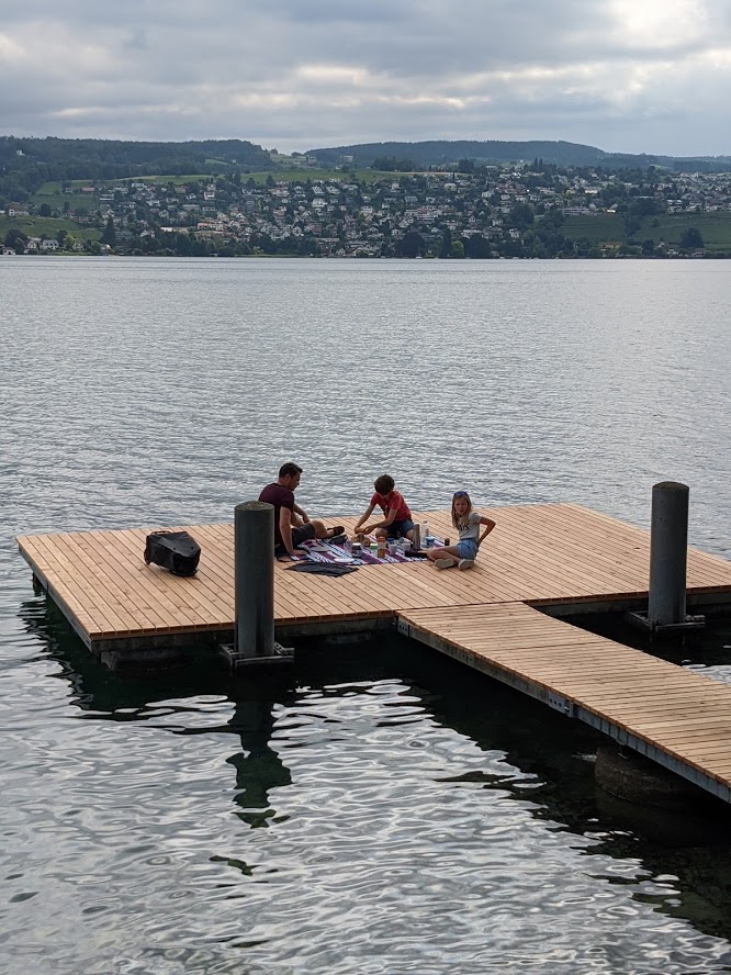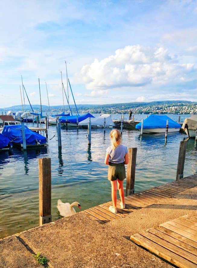 Onderweg kom je voorbij een ‘Hofladen’ (boerderij waar je streekproducenten kan kopen). Daar hielden we even halt en genoten er van een hoeveijsje en de boerderijdieren. Nu weten we waarom het vlees hier in Zwitserland zo duur is. De hoevekippen hebben alvast geen plaatsgebrek.