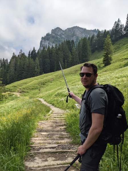 Het was even geleden dat we onze wandelstokken nog nodig hadden. Een lange winter en een korte lente zorgden er voor dat zwaardere wandelingen iets langer uitbleven. Maar vandaag gingen we nog eens voor een pittig tripje. 9,5 kilometer maar vooral een stevig klimmetje naar de top van de Chli Aubrig berg.