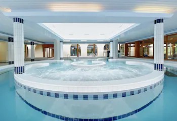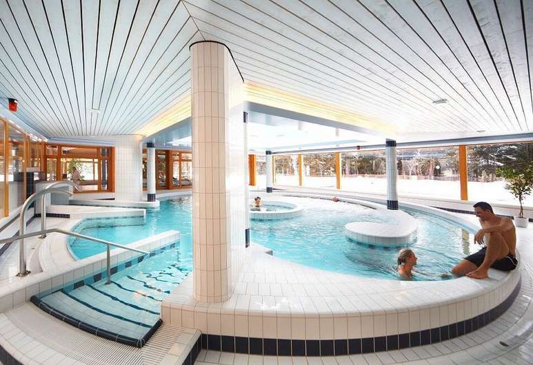 Na het klimmen mochten de spieren nog wat ontspannen in het zwembad van het hotel. Zalig! Een binnenbad met heerlijk warm water en een stroming waar Gust en Julia tientallen keren doorgingen, een sauna, Turks stoombad, koud dompelbad en een klein maar fijn buitenbad. Ideaal om het vakantiegevoel te versterken.