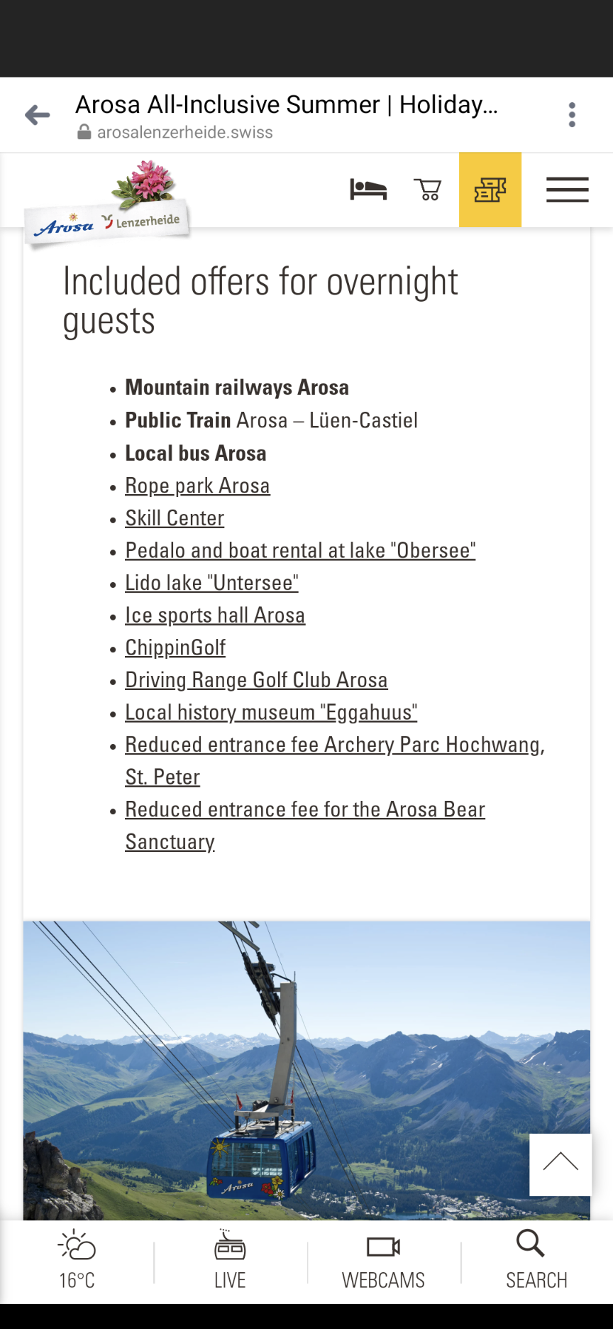 Zo mag je gedurende je verblijf alle kabelbanen of liftjes in Arosa zelf gratis nemen. Alle openbaar vervoer in Arosa is ook helemaal gratis. Daarnaast kan je een pedalo huren of een namiddag doorbrengen aan het strandbad ‘Untersee’ zonder enige kostprijs. Andere activiteiten zoals het touwenparcours, berenland, golfen, schaatsen… kan je tegen hoge kortingen beleven. Absoluut een zeer mooi voordeel als je weet wat kabelliftjes alleen al kosten in Zwitserland.